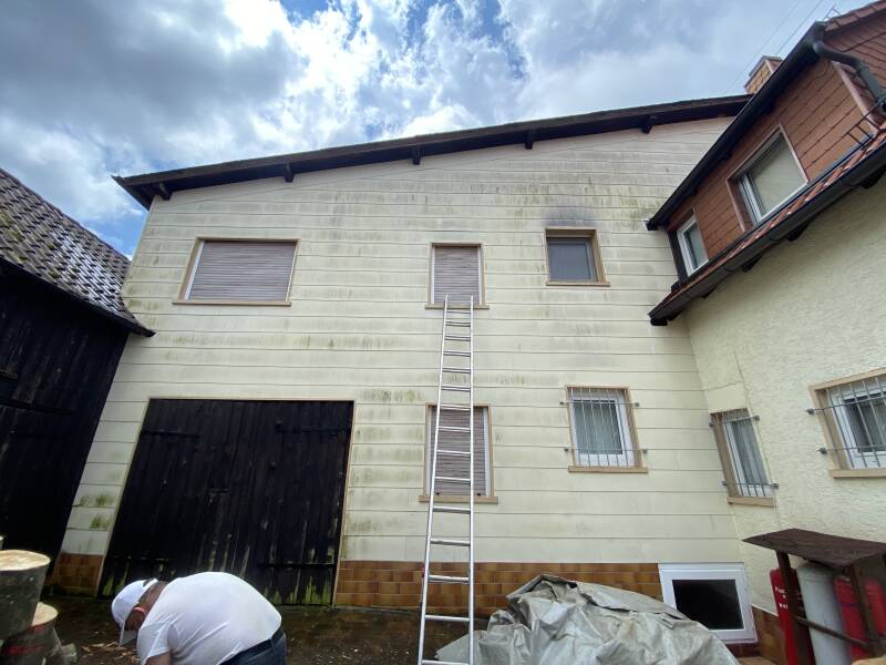 Fassadenreinigung vorher und nachher Mit Spezialmittel